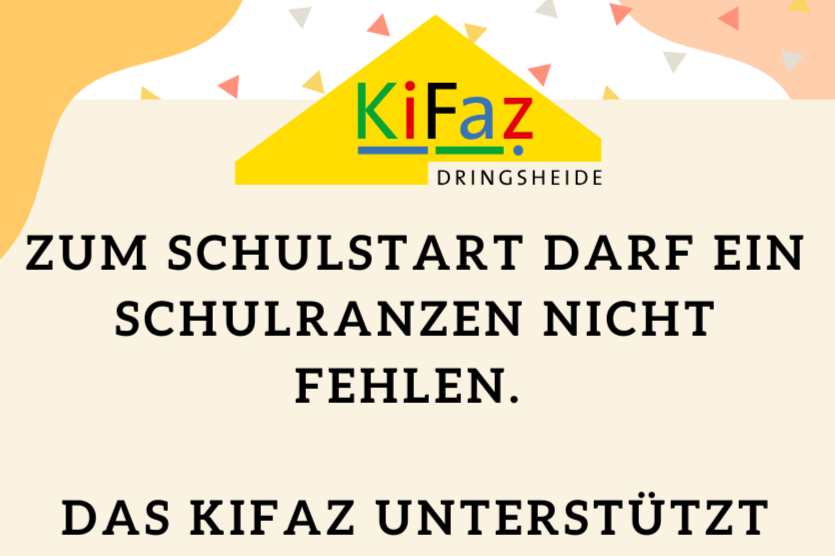 Zum Schulstart darf ein Schulranzen nicht fehlen. Unser Kooperationspartner KiFaz Dringsheide macht auf ein Unterstützungsangebot aufmerksam:Gemeinsam mit der Stiftung Kindsein unterstützt das KiFaz Familien, ...